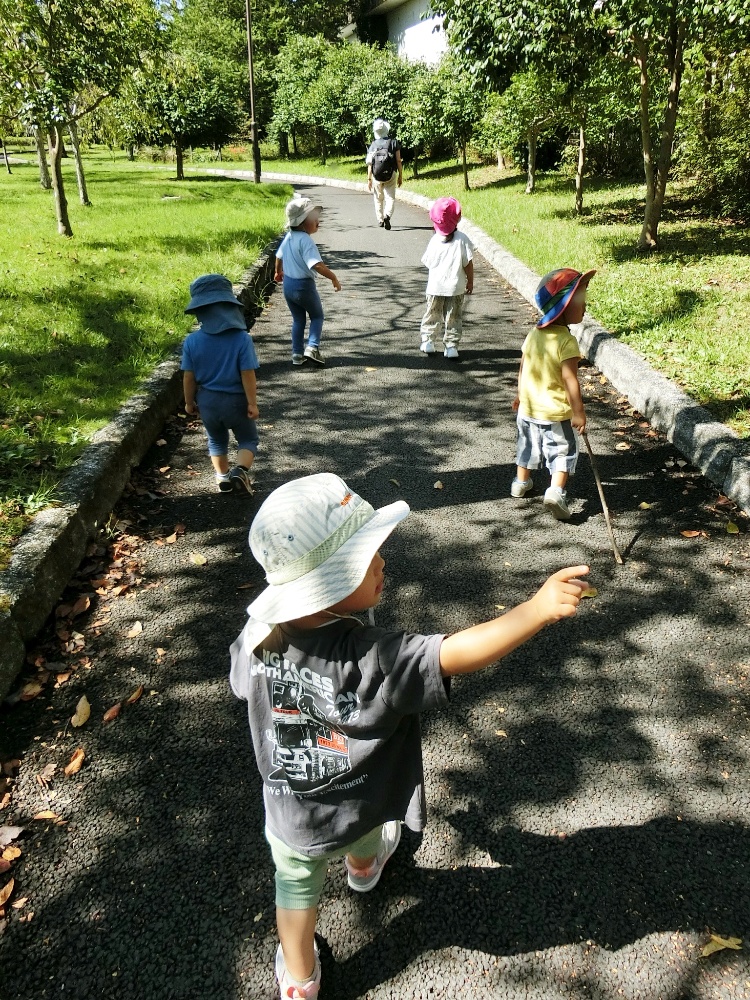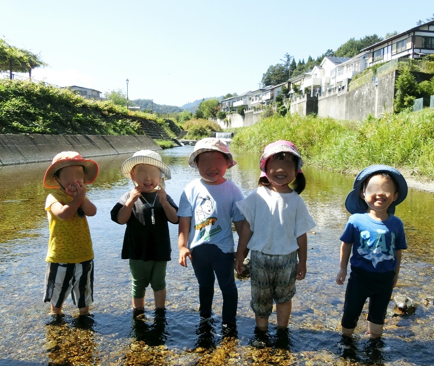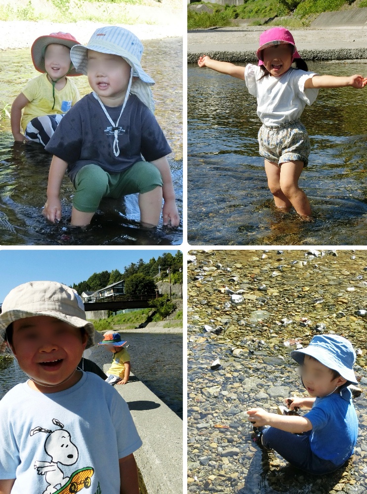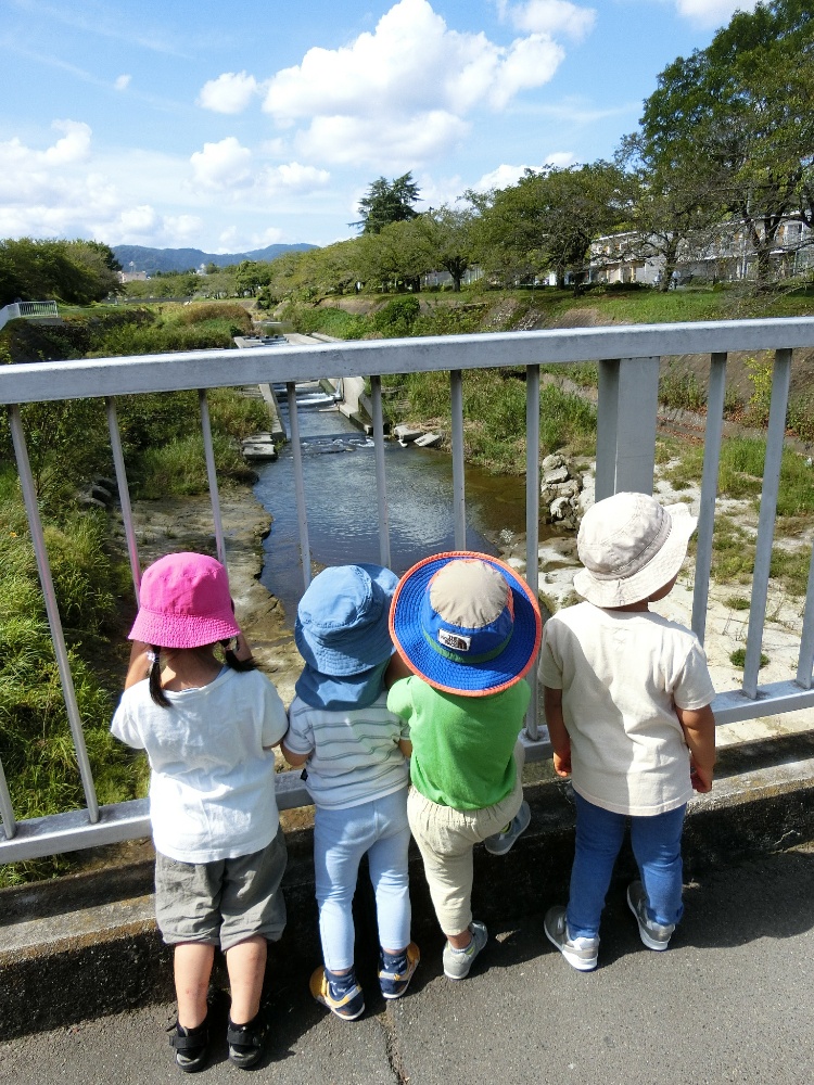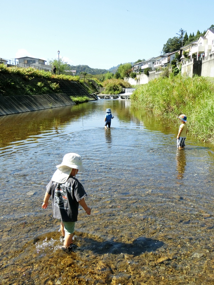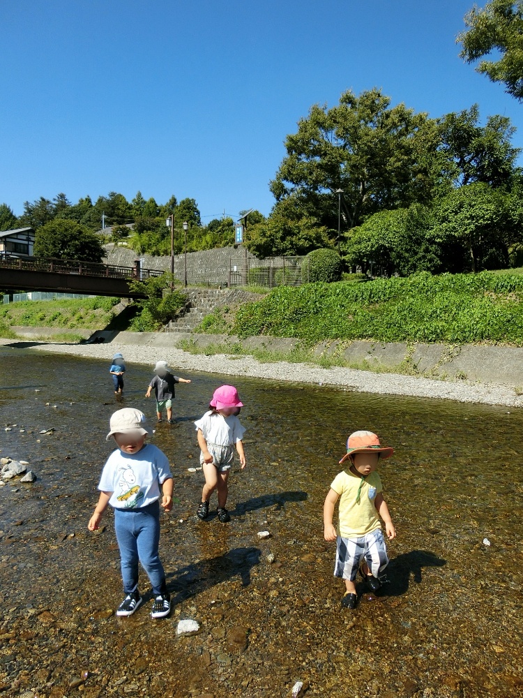 歩いて、浅川で遊んで、お腹いっぱいお弁当を食べて、そして帰りのバス停…