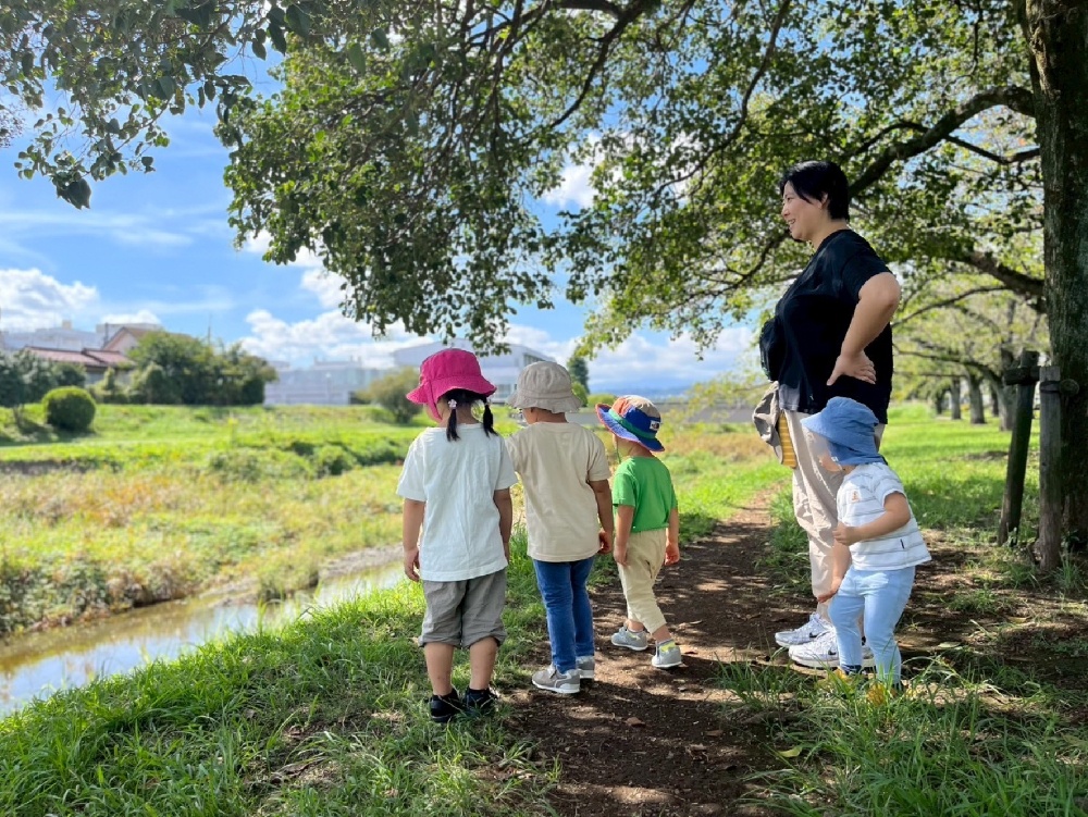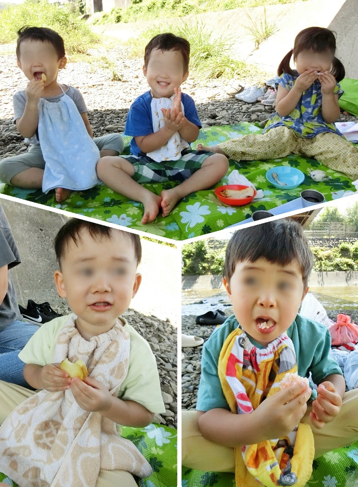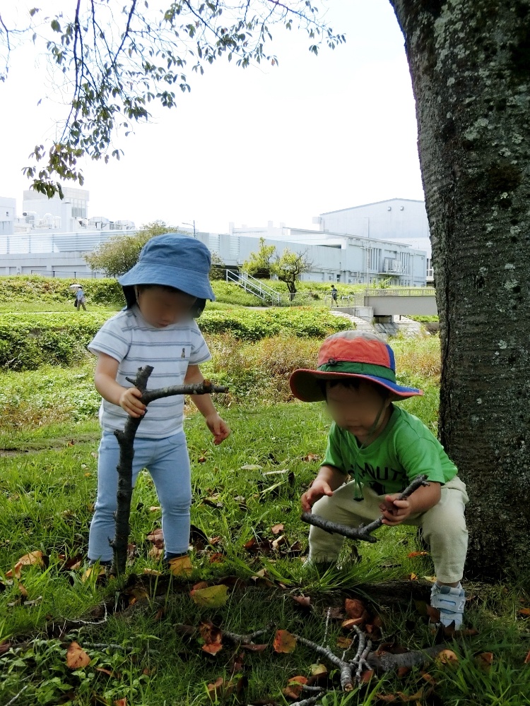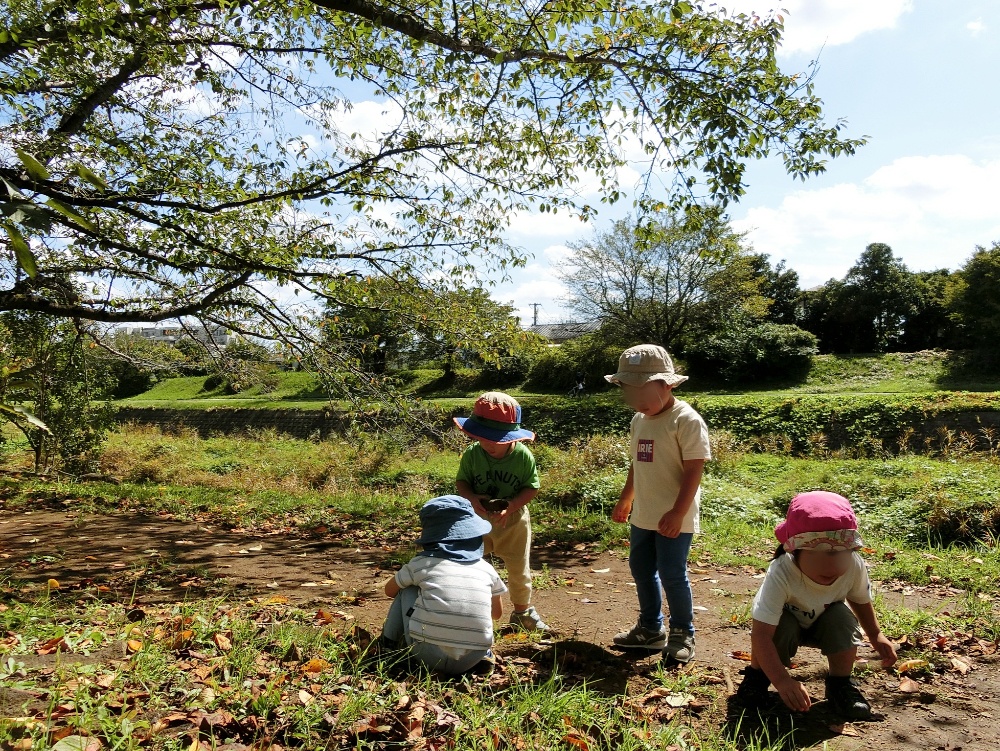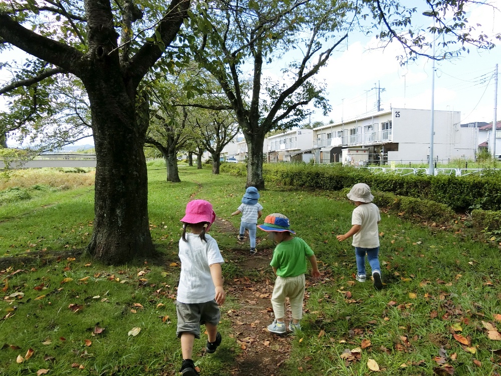 歩いて、浅川で遊んで、お腹いっぱいお弁当を食べて、そして帰りのバス停…