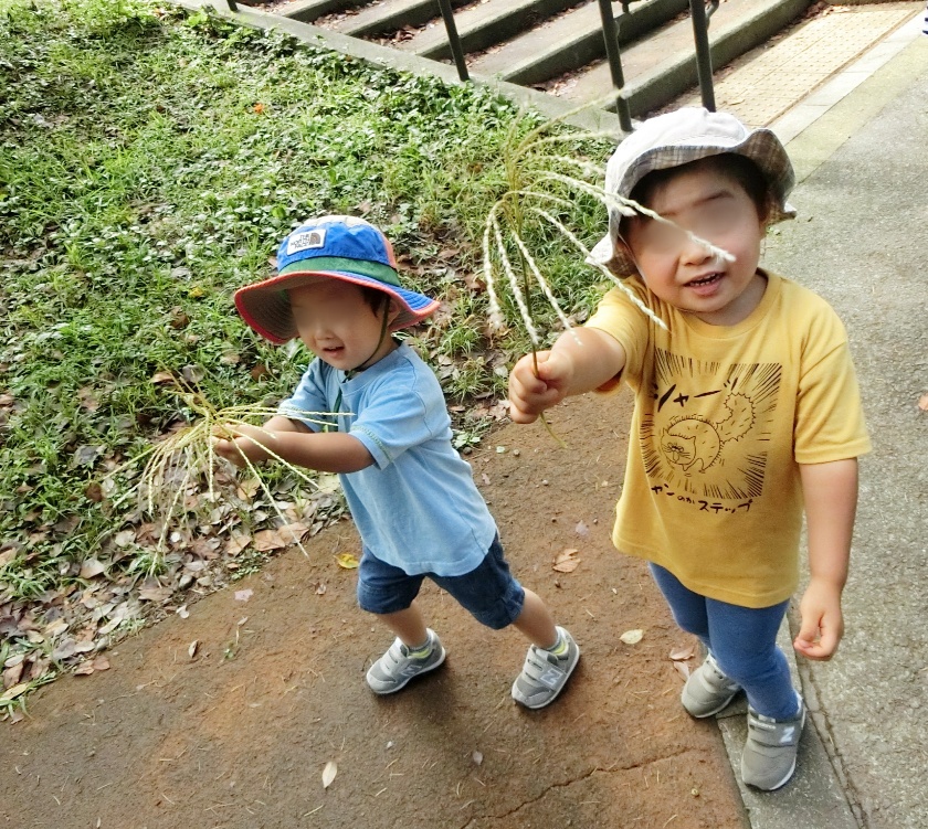 散歩で拾ったどんぐりやとちの実、すすきもテーブルの上に置いて、みんなで美味しく頂きました。