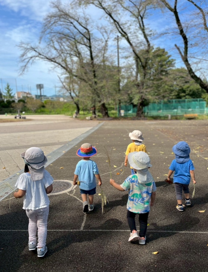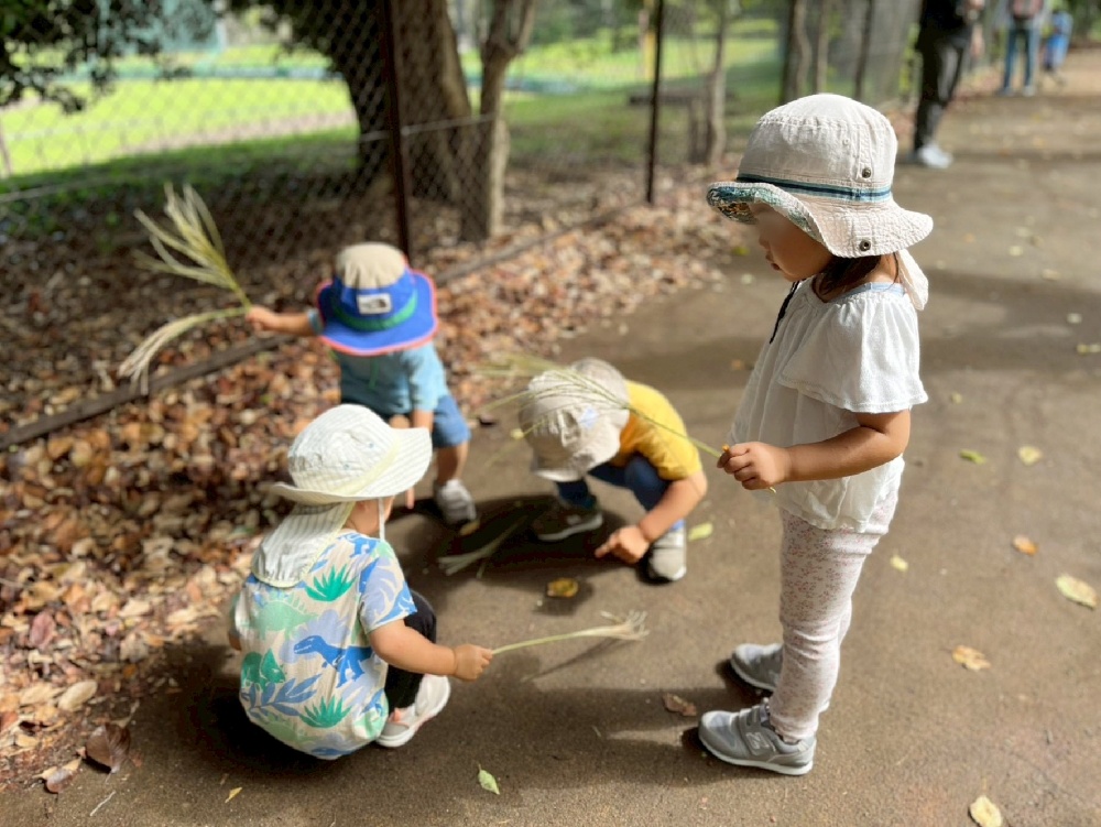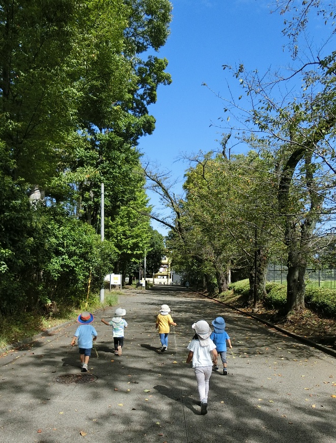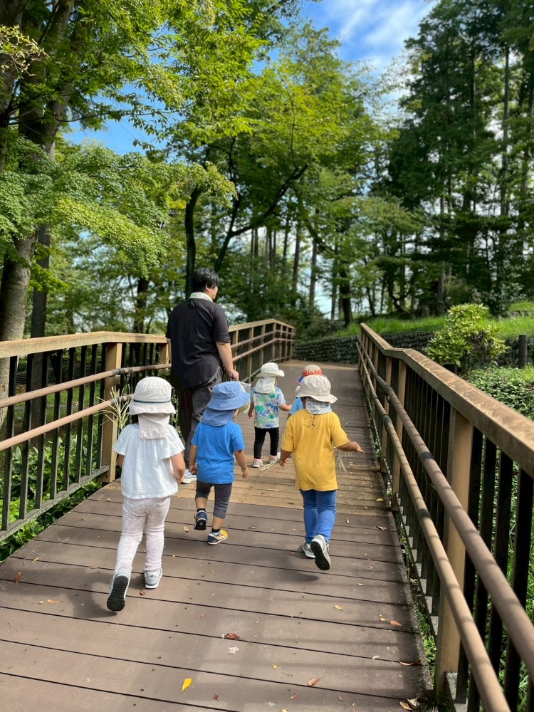 森を散策して、どんぐりやとちの実を拾い、天狗の葉を見つけ、蝶やミミズに出会い…