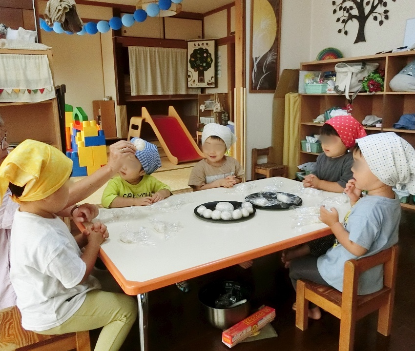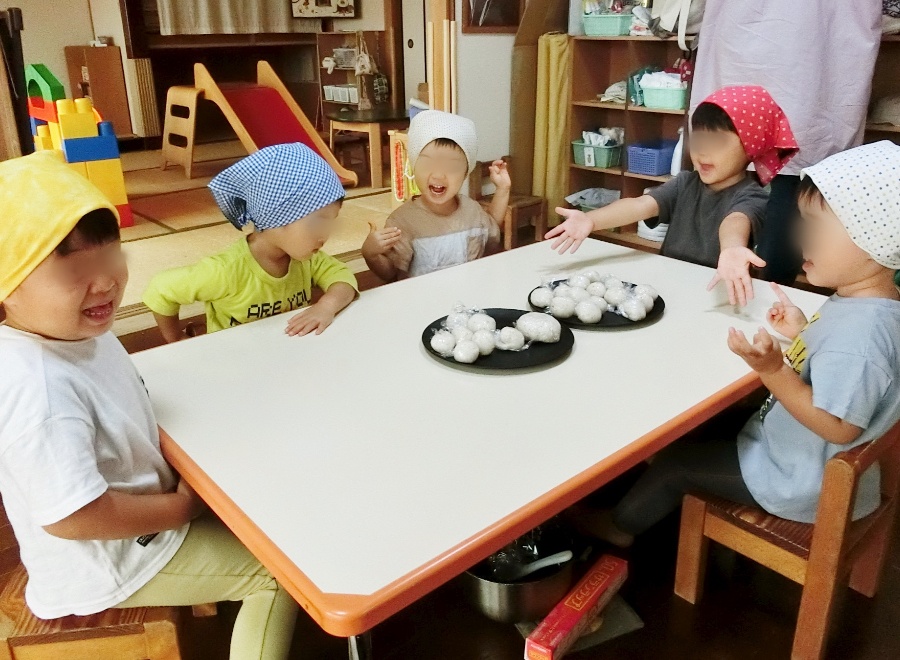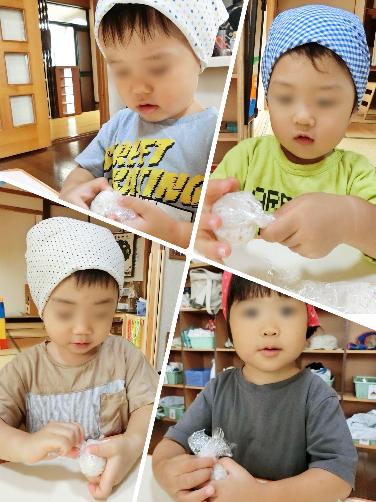 お肉が好きな子ども達らしくて良いかなと思い、肉団子は大人が、おむすび団子は子どもが作りました。