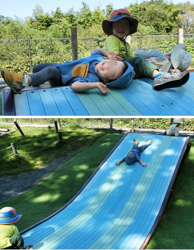 (仰向け・うつ伏せ・頭から・お尻から…色んな滑り方が楽しい滑り台)