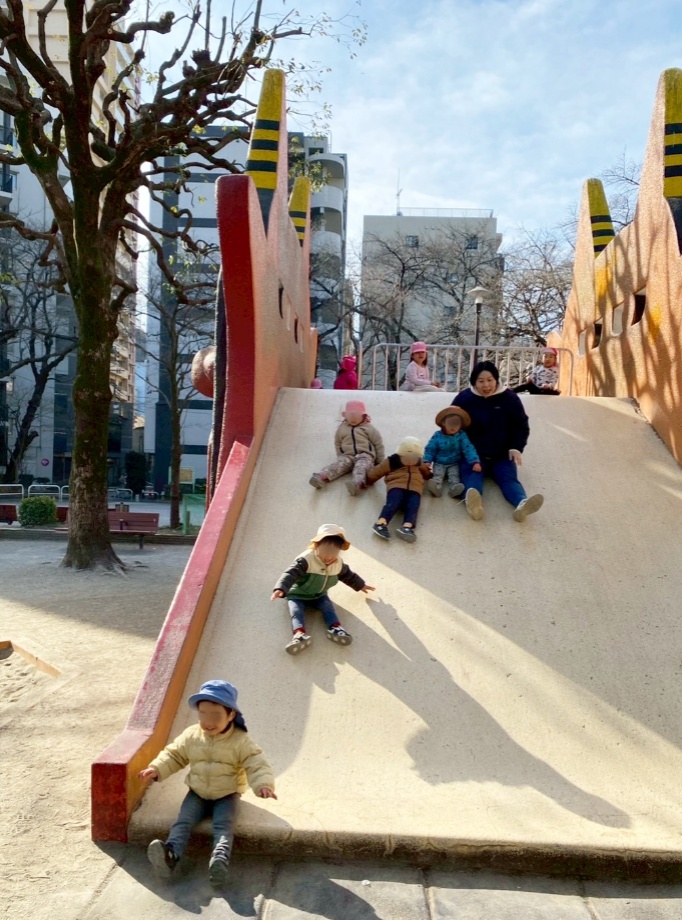 幅広滑り台を何度も何度も滑り大興奮でした。