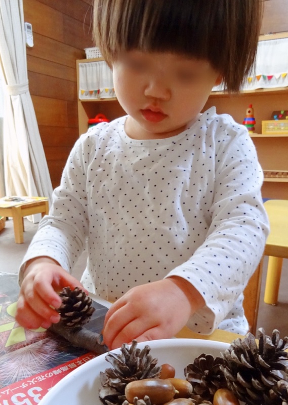 東散田公園や富士森公園には、どんぐりや松ぼっくり、木の枝がたくさん落ちており、感性豊かな子ども達は、持ち帰らずにはいられない魅力を感じるようです。