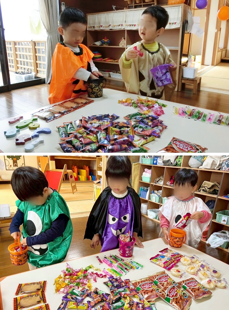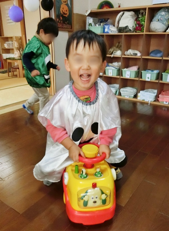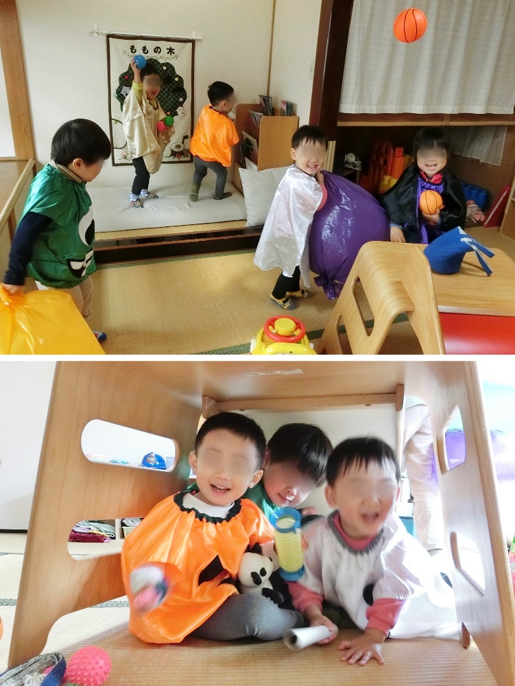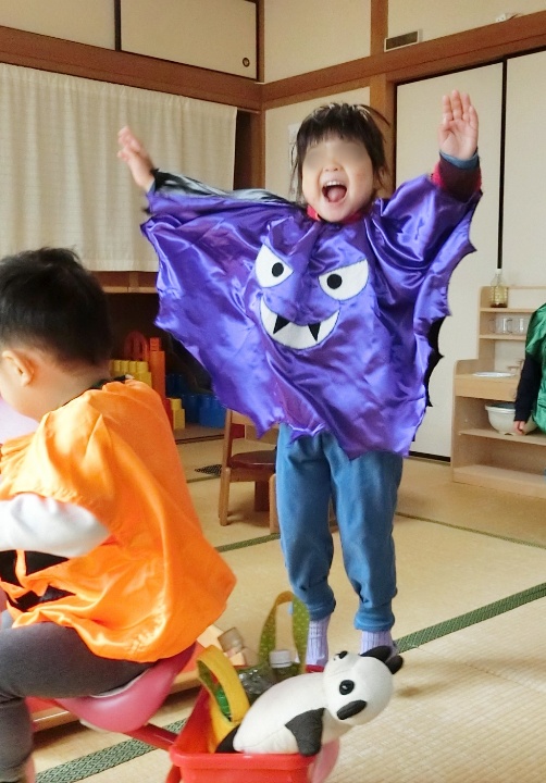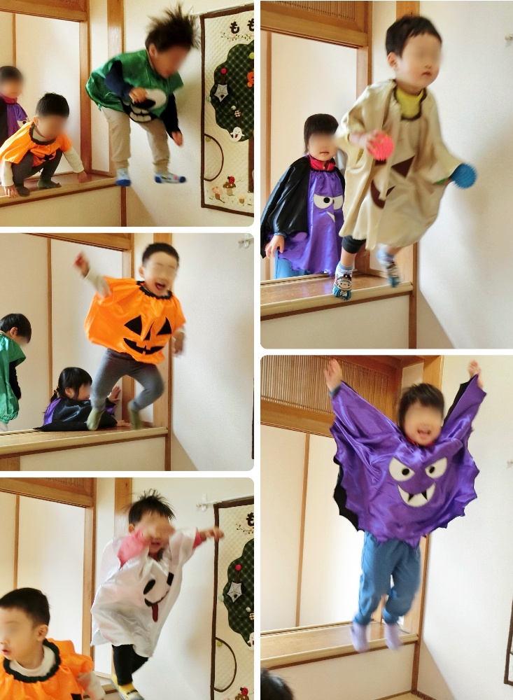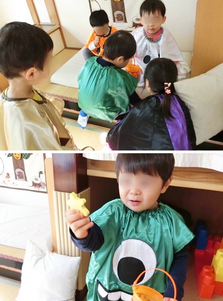 「目を閉じててね〜、見ないでね〜」とお願いすると、ギュッと目をつぶるおばけと、手の隙間から見てるおばけ、薄目で見てるおばけも…