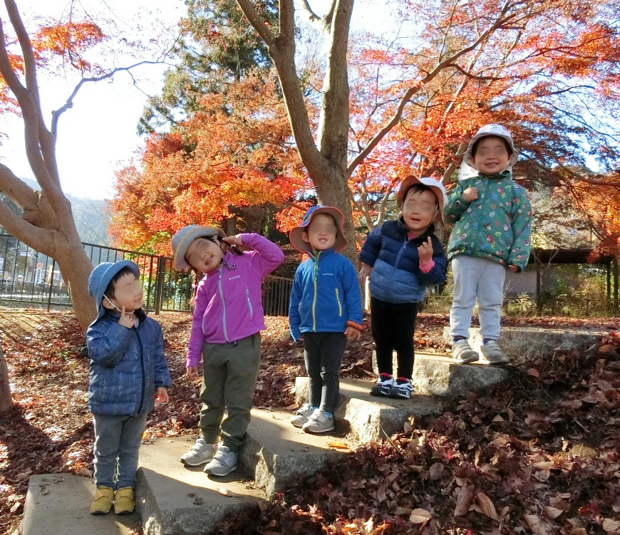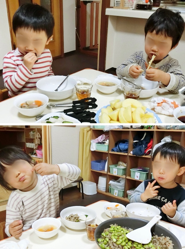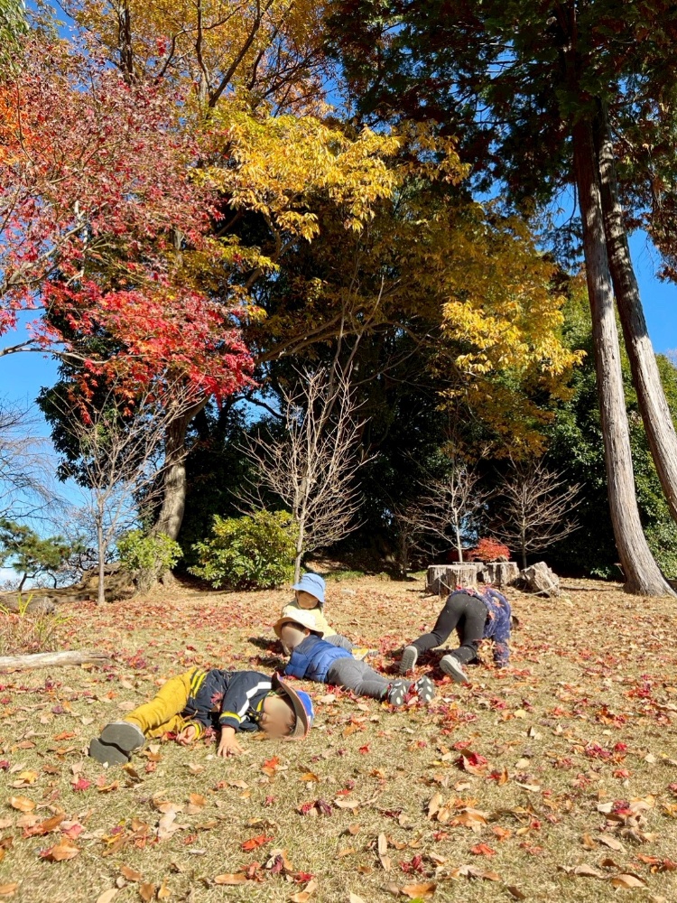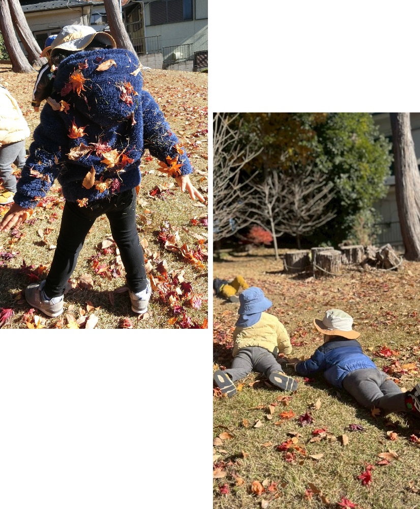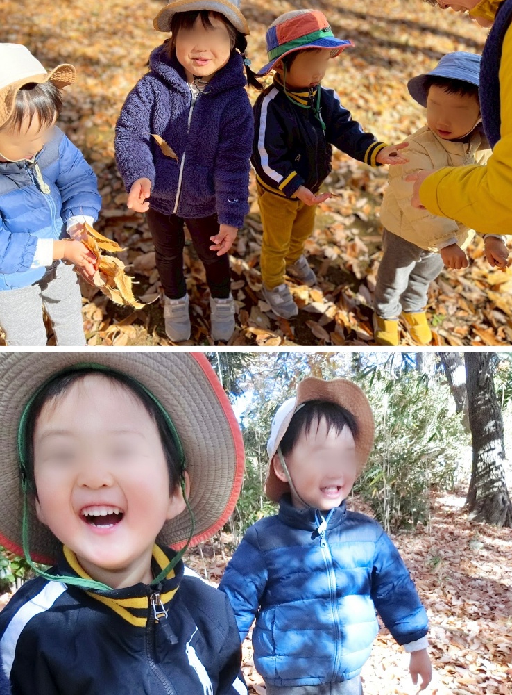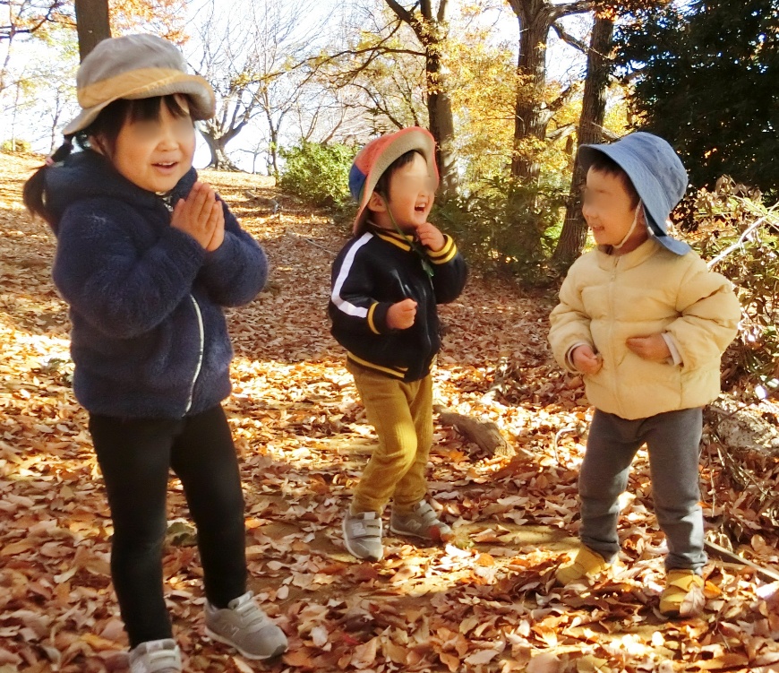 とわらべうたを歌い、手の中のどんぐりを当てあったり、時には替え歌しながら、大爆笑をしています。