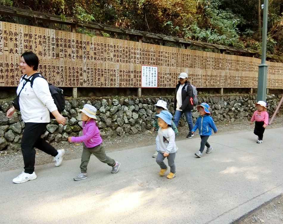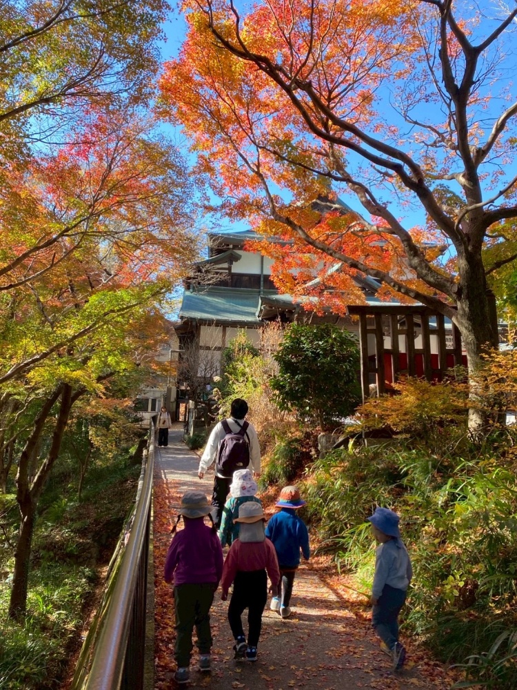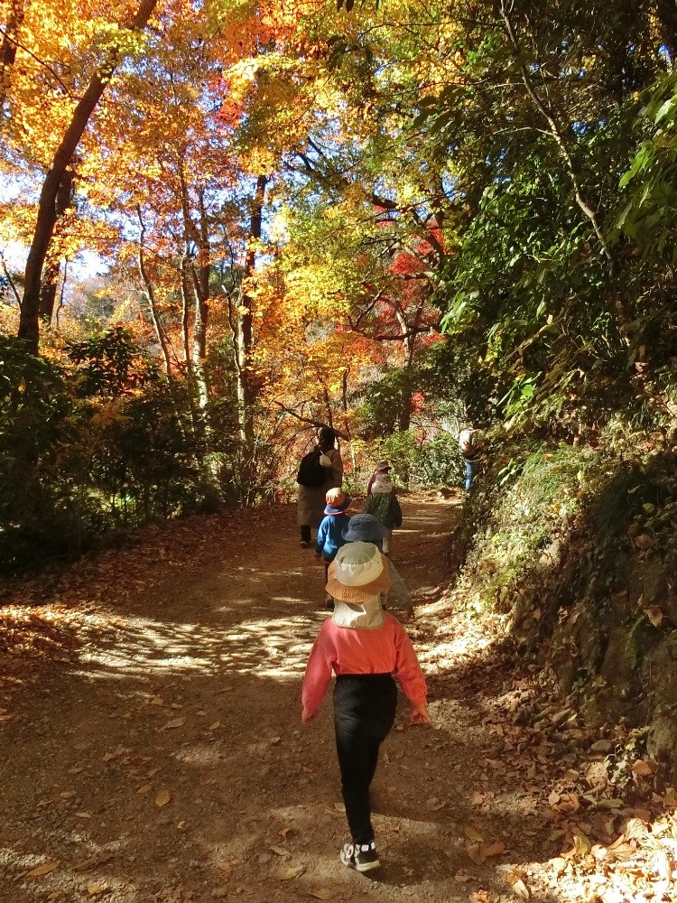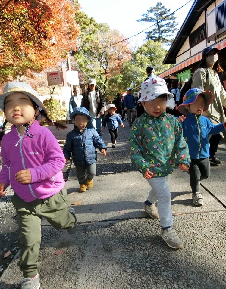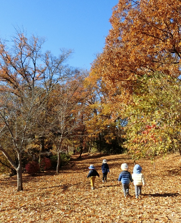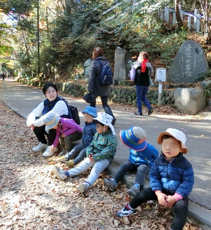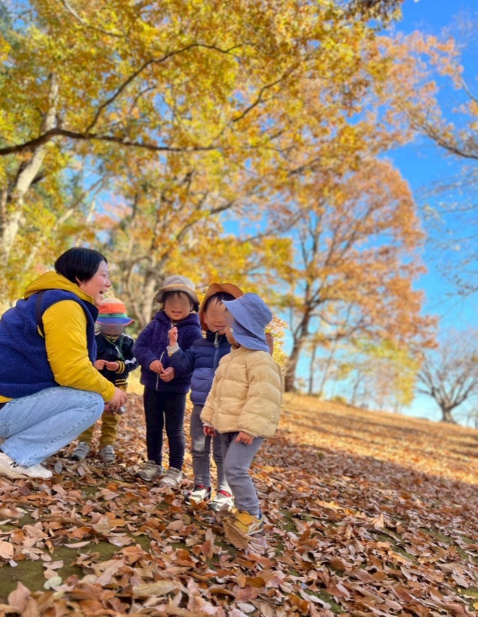 とわらべうたを歌い、手の中のどんぐりを当てあったり、時には替え歌しながら、大爆笑をしています。