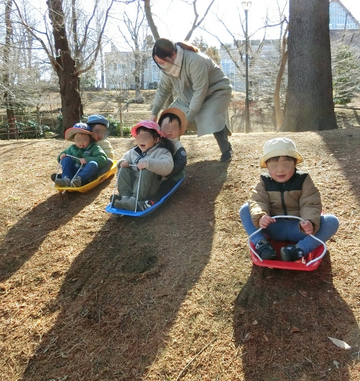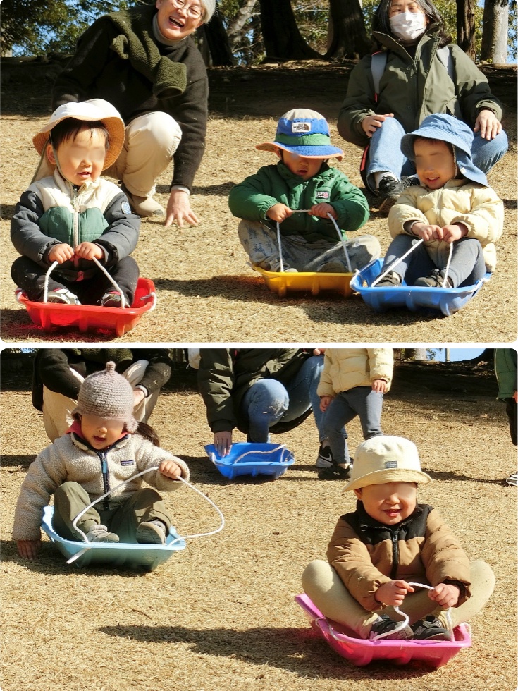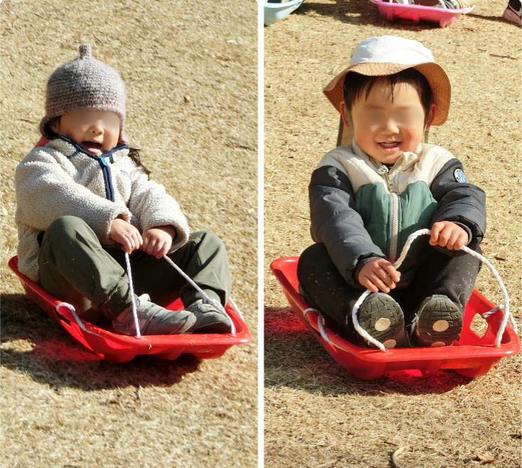 真冬なのに、うっすら汗が光るそり遊びでした。