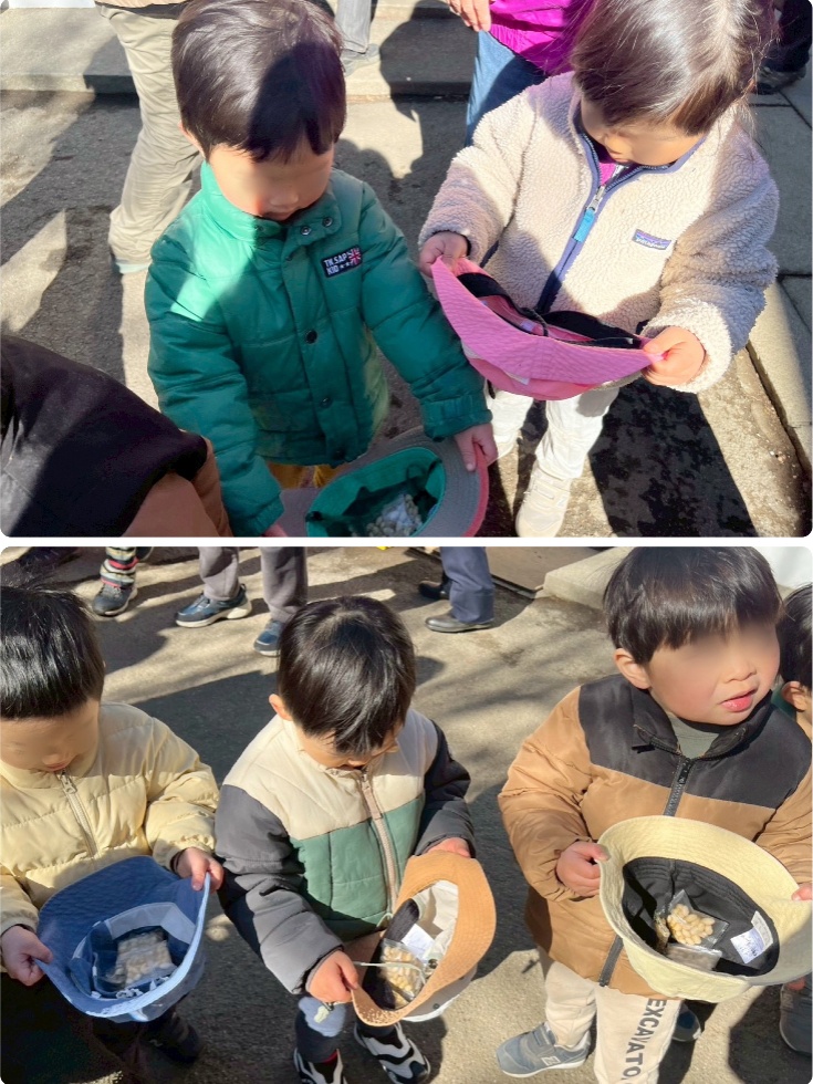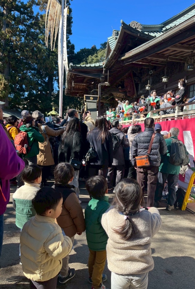 後ろの方に居ましたが、しっかりと見つけて頂き、豆を届くように投げてくれたり、前の方に居た方々が「取れた?」「ほら、あげるよ」とお裾分けしてくれたり…