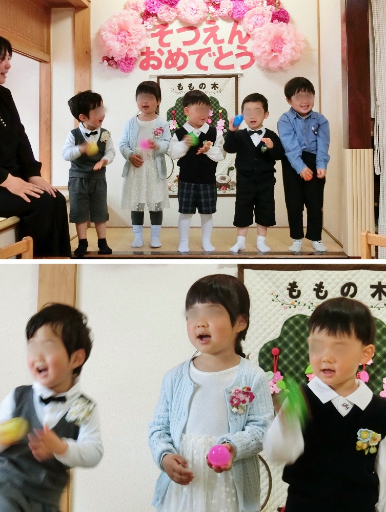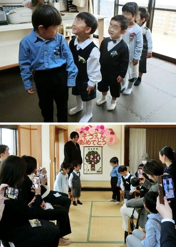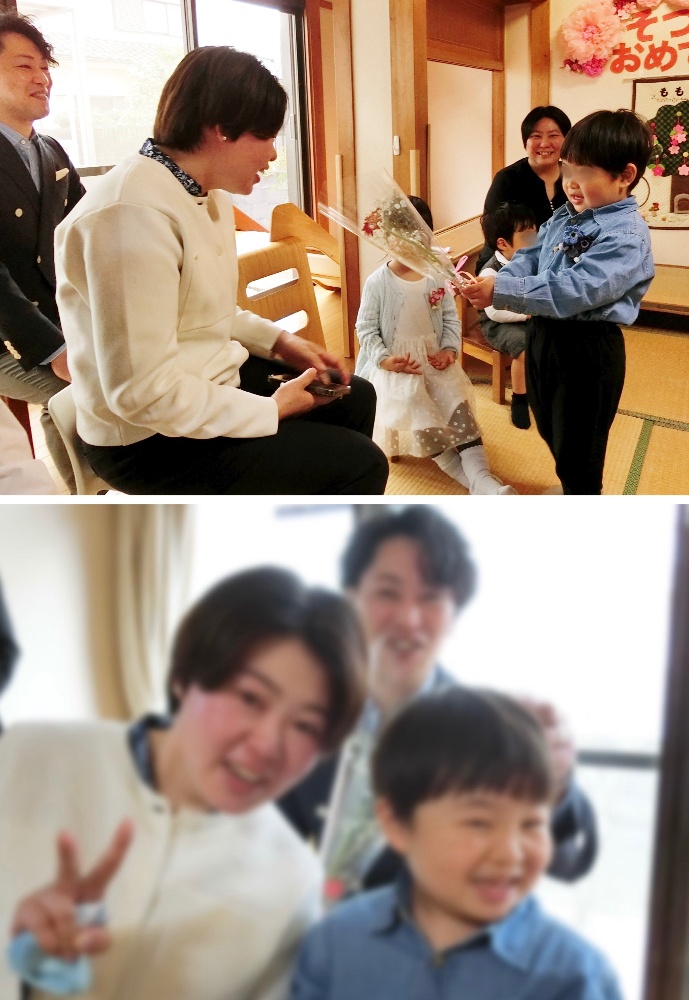 子ども達へのインタビューでは、今度行く保育園・幼稚園やそれぞれの好きなものを聞き、保護者の方には「自分の好きなところ・我が子の好きなところ」を発表して頂きました。