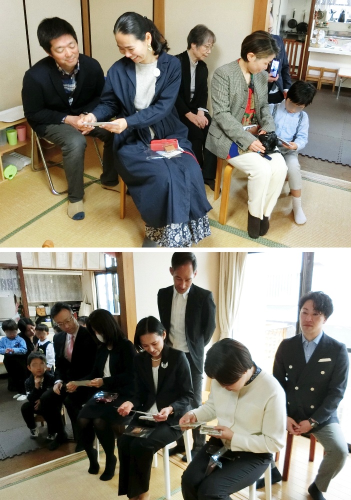 式を始める前に、1年間の写真を使ったカレンダーのプレゼント。1年前の4月の顔や体と、今の姿を見て頂く時間となりました。